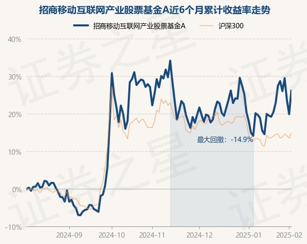 证券之星消息,2月6日,招商移动互联网产业股票基金A最新单位净值为1.3823元,累计净值为1.3823元,较前一交易日上涨5.24%。历史数据显示该基金近1个月上涨10.54%,近3个月下跌0.68%,近6个月上涨26.19%,近1年上涨46.32%。该基金近6个月的累计收益率走势如下图: