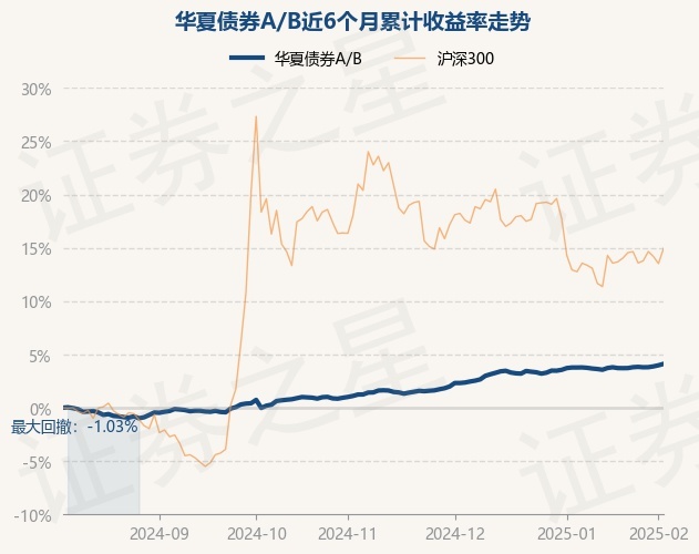 证券之星消息,2月6日,华夏债券A/B最新单位净值为1.398元,累计净值为2.333元,较前一交易日上涨0.13%。历史数据显示该基金近1个月上涨0.33%,近3个月上涨2.83%,近6个月上涨4.12%,近1年上涨6.69%。该基金近6个月的累计收益率走势如下图: