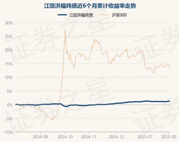 证券之星消息,2月6日,江信洪福纯债最新单位净值为1.0495元,累计净值为1.3733元,较前一交易日上涨0.07%。历史数据显示该基金近1个月下跌0.01%,近3个月上涨1.45%,近6个月上涨1.27%,近1年上涨3.57%。该基金近6个月的累计收益率走势如下图: