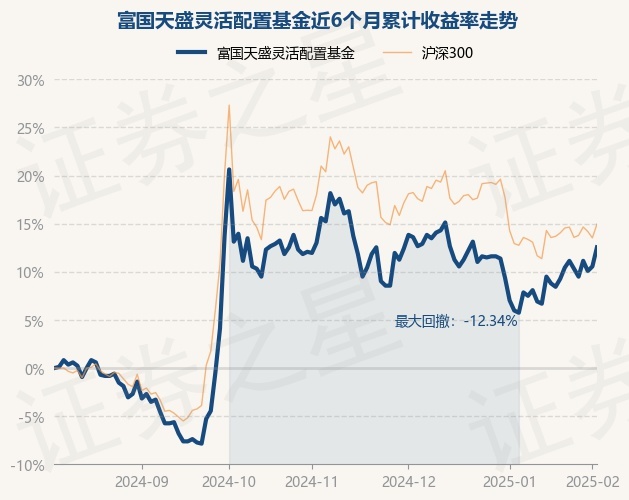 证券之星消息,2月6日,富国天盛灵活配置基金最新单位净值为0.96元,累计净值为2.483元,较前一交易日上涨1.8%。历史数据显示该基金近1个月上涨6.43%,近3个月下跌2.34%,近6个月上涨12.54%,近1年上涨11.24%。该基金近6个月的累计收益率走势如下图: