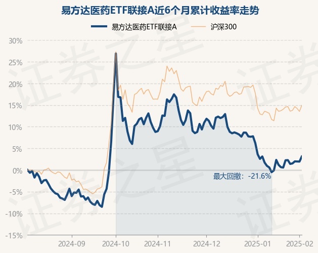 证券之星消息,2月6日,易方达医药ETF联接A最新单位净值为0.8598元,累计净值为0.8598元,较前一交易日上涨1.15%。历史数据显示该基金近1个月下跌0.01%,近3个月下跌8.34%,近6个月上涨3.12%,近1年下跌3.6%。该基金近6个月的累计收益率走势如下图:
