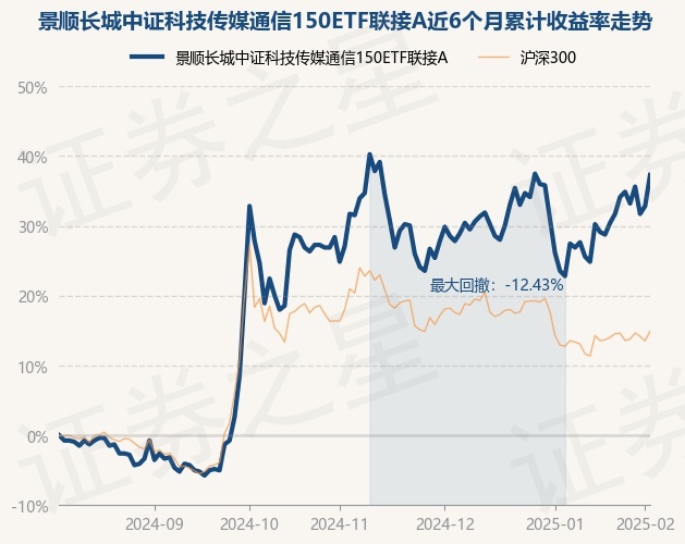 证券之星消息,2月6日,景顺长城中证科技传媒通信150ETF联接A最新单位净值为0.74元,累计净值为0.74元,较前一交易日上涨3.35%。历史数据显示该基金近1个月上涨11.78%,近3个月上涨4.37%,近6个月上涨37.29%,近1年上涨48.0%。该基金近6个月的累计收益率走势如下图: