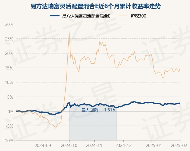 证券之星消息,2月6日,易方达瑞富灵活配置混合E最新单位净值为1.425元,累计净值为1.565元,较前一交易日上涨0.14%。历史数据显示该基金近1个月上涨0.14%,近3个月上涨0.71%,近6个月上涨2.81%,近1年上涨6.66%。该基金近6个月的累计收益率走势如下图: