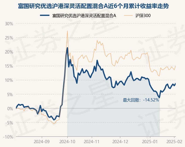 证券之星消息,2月6日,富国研究优选沪港深灵活配置混合A最新单位净值为1.979元,累计净值为1.979元,较前一交易日上涨0.66%。历史数据显示该基金近1个月上涨1.91%,近3个月下跌3.93%,近6个月上涨8.68%,近1年上涨6.97%。该基金近6个月的累计收益率走势如下图: