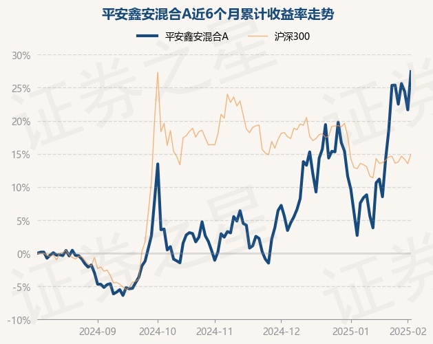 证券之星消息,2月6日,平安鑫安混合A最新单位净值为1.3622元,累计净值为1.3622元,较前一交易日上涨4.75%。历史数据显示该基金近1个月上涨24.1%,近3个月上涨24.41%,近6个月上涨27.43%,近1年上涨22.75%。该基金近6个月的累计收益率走势如下图: