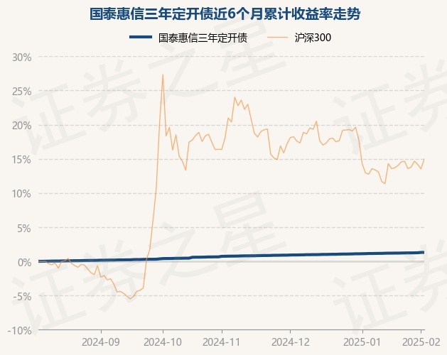 证券之星消息,2月6日,国泰惠信三年定开债最新单位净值为1.0055元,累计净值为1.1414元,较前一交易日上涨0.0%。历史数据显示该基金近1个月上涨0.16%,近3个月上涨0.54%,近6个月上涨1.3%,近1年上涨2.44%。该基金近6个月的累计收益率走势如下图: