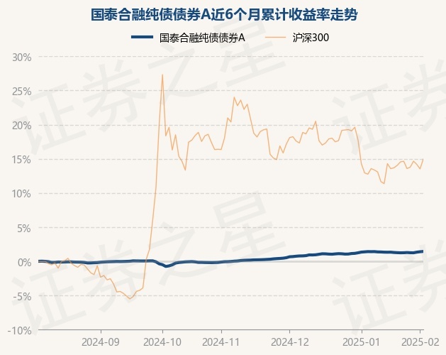 证券之星消息,2月6日,国泰合融纯债债券A最新单位净值为1.1165元,累计净值为1.2099元,较前一交易日上涨0.04%。历史数据显示该基金近1个月上涨0.03%,近3个月上涨1.47%,近6个月上涨1.45%,近1年上涨3.89%。该基金近6个月的累计收益率走势如下图: