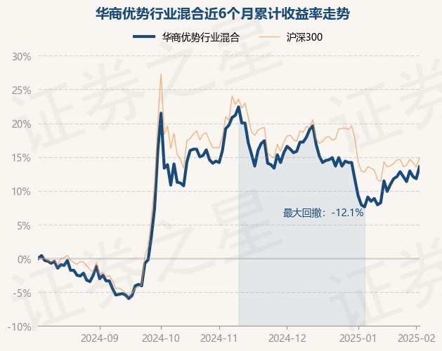 证券之星消息,2月6日,华商优势行业混合最新单位净值为1.089元,累计净值为3.419元,较前一交易日上涨1.59%。历史数据显示该基金近1个月上涨5.52%,近3个月下跌5.14%,近6个月上涨13.56%,近1年上涨21.95%。该基金近6个月的累计收益率走势如下图:
