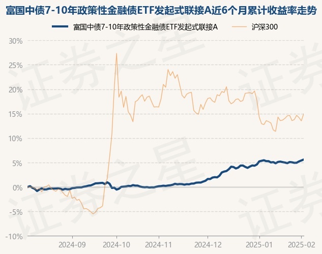 证券之星消息,2月6日,富国中债7-10年政策性金融债ETF发起式联接A最新单位净值为1.1659元,累计净值为1.1689元,较前一交易日上涨0.18%。历史数据显示该基金近1个月上涨0.14%,近3个月上涨5.39%,近6个月上涨5.6%,近1年上涨11.55%。该基金近6个月的累计收益率走势如下图: