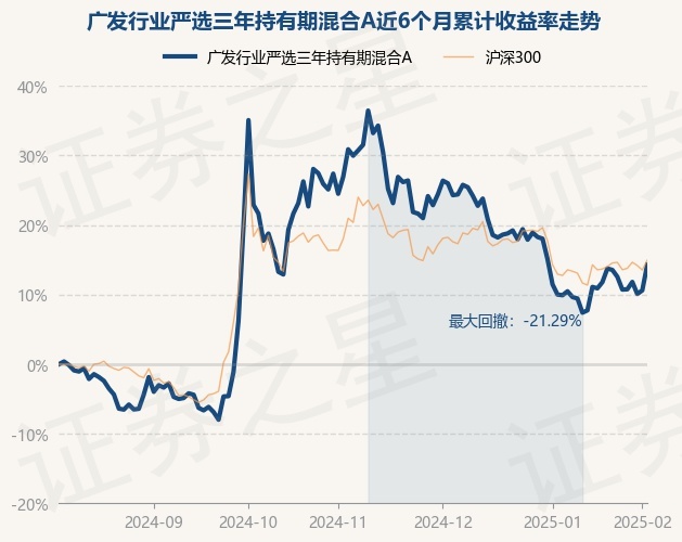 证券之星消息,2月6日,广发行业严选三年持有期混合A最新单位净值为0.5095元,累计净值为0.5095元,较前一交易日上涨3.33%。历史数据显示该基金近1个月上涨3.98%,近3个月下跌12.06%,近6个月上涨14.29%,近1年上涨21.43%。该基金近6个月的累计收益率走势如下图: