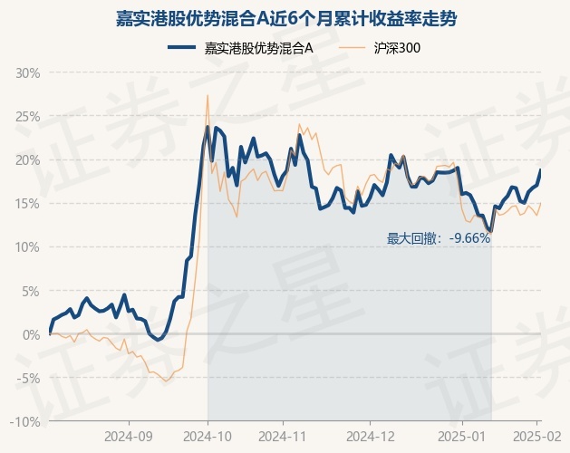 证券之星消息,2月6日,嘉实港股优势混合A最新单位净值为0.8923元,累计净值为0.8923元,较前一交易日上涨1.43%。历史数据显示该基金近1个月上涨2.42%,近3个月下跌0.55%,近6个月上涨18.67%,近1年上涨32.92%。该基金近6个月的累计收益率走势如下图: