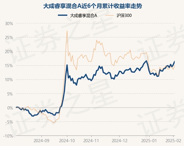 证券之星消息,2月6日,大成睿享混合A最新单位净值为1.5603元,累计净值为1.7746元,较前一交易日上涨0.94%。历史数据显示该基金近1个月上涨3.8%,近3个月上涨4.4%,近6个月上涨16.34%,近1年上涨27.05%。该基金近6个月的累计收益率走势如下图: