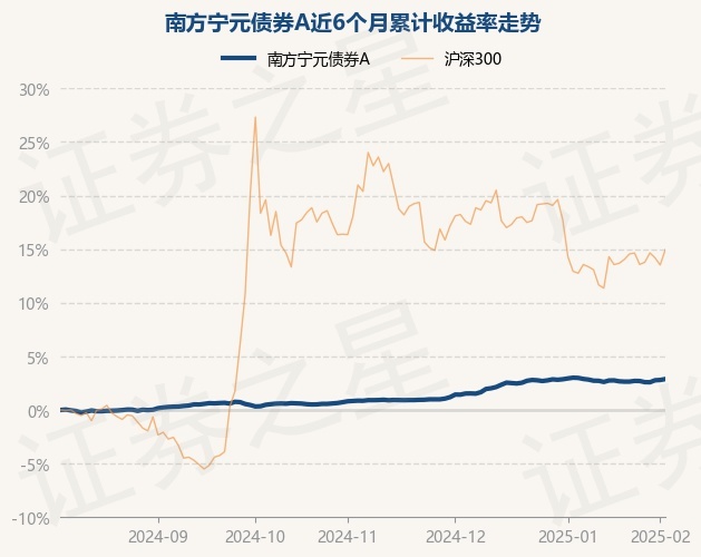 证券之星消息,2月6日,南方宁元债券A最新单位净值为1.0661元,累计净值为1.0661元,较前一交易日上涨0.08%。历史数据显示该基金近1个月下跌0.1%,近3个月上涨2.01%,近6个月上涨2.89%,近1年上涨5.67%。该基金近6个月的累计收益率走势如下图:
