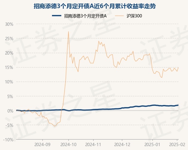 证券之星消息,2月6日,招商添德3个月定开债A最新单位净值为1.1186元,累计净值为1.3382元,较前一交易日上涨0.07%。历史数据显示该基金近1个月上涨0.0%,近3个月上涨1.51%,近6个月上涨1.82%,近1年上涨3.86%。该基金近6个月的累计收益率走势如下图: