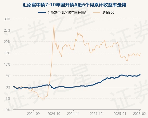 证券之星消息,2月6日,汇添富中债7-10年国开债A最新单位净值为1.2625元,累计净值为1.2685元,较前一交易日上涨0.2%。历史数据显示该基金近1个月上涨0.18%,近3个月上涨5.43%,近6个月上涨5.44%,近1年上涨11.01%。该基金近6个月的累计收益率走势如下图:
