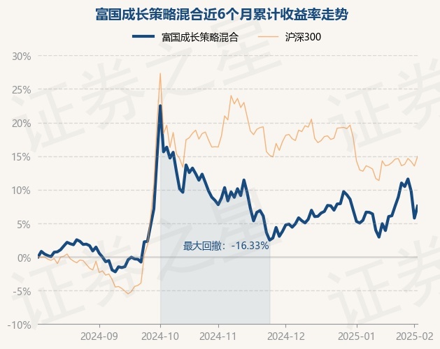 证券之星消息,2月6日,富国成长策略混合最新单位净值为0.9574元,累计净值为0.9574元,较前一交易日上涨1.69%。历史数据显示该基金近1个月上涨2.0%,近3个月下跌0.72%,近6个月上涨7.56%,近1年上涨26.42%。该基金近6个月的累计收益率走势如下图: