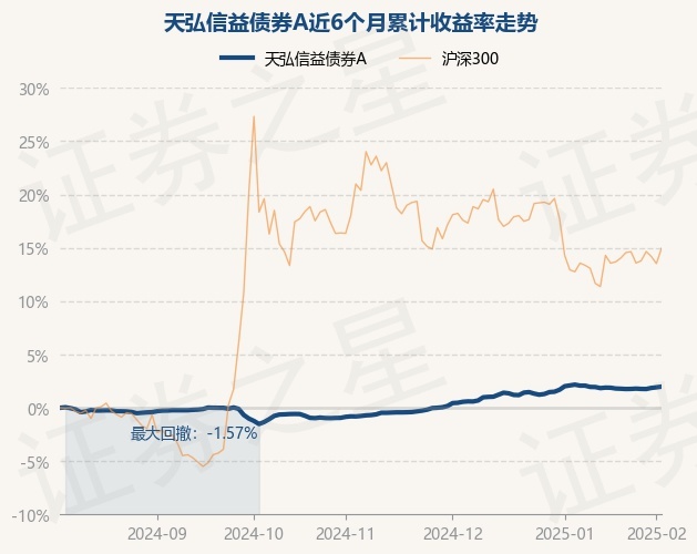 证券之星消息,2月6日,天弘信益债券A最新单位净值为1.0904元,累计净值为1.1852元,较前一交易日上涨0.06%。历史数据显示该基金近1个月下跌0.18%,近3个月上涨2.77%,近6个月上涨1.98%,近1年上涨5.74%。该基金近6个月的累计收益率走势如下图: