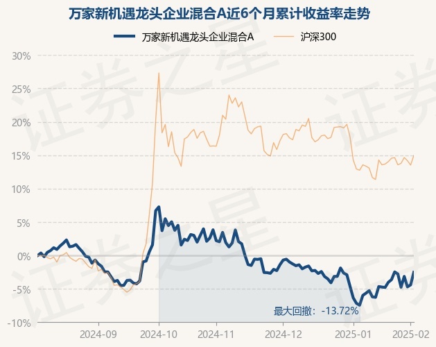 证券之星消息,2月6日,万家新机遇龙头企业混合A最新单位净值为1.4066元,累计净值为2.4466元,较前一交易日上涨1.97%。历史数据显示该基金近1个月上涨5.32%,近3个月下跌4.28%,近6个月下跌2.44%,近1年下跌1.97%。该基金近6个月的累计收益率走势如下图: