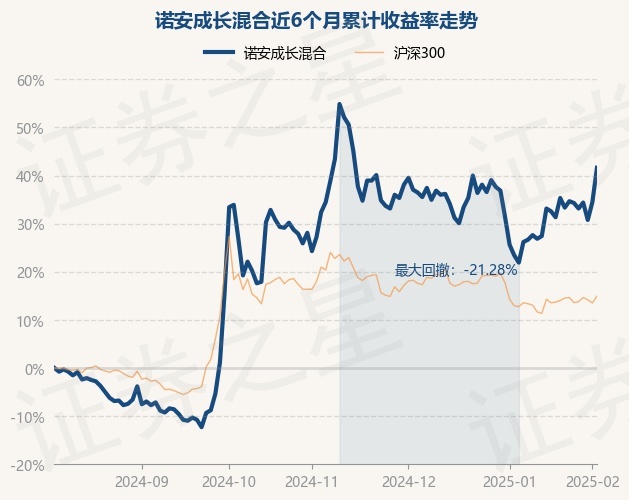 证券之星消息,2月6日,诺安成长混合最新单位净值为1.487元,累计净值为1.932元,较前一交易日上涨5.31%。历史数据显示该基金近1个月上涨16.17%,近3个月上涨5.31%,近6个月上涨41.62%,近1年上涨50.2%。该基金近6个月的累计收益率走势如下图: