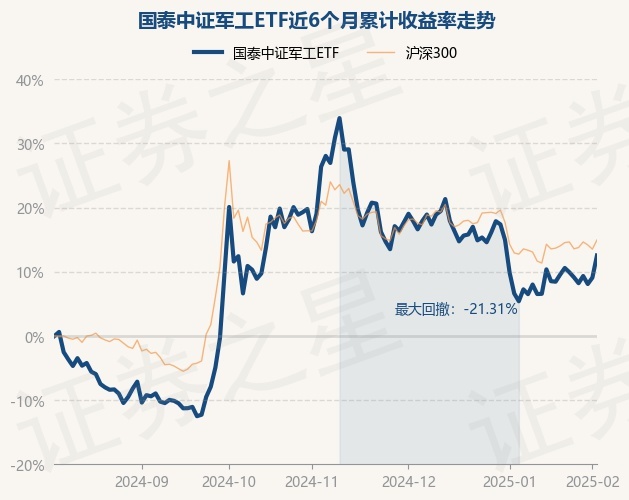 证券之星消息,2月6日,国泰中证军工ETF最新单位净值为1.0197元,累计净值为1.0197元,较前一交易日上涨3.17%。历史数据显示该基金近1个月上涨6.76%,近3个月下跌12.12%,近6个月上涨12.54%,近1年上涨32.76%。该基金近6个月的累计收益率走势如下图:
