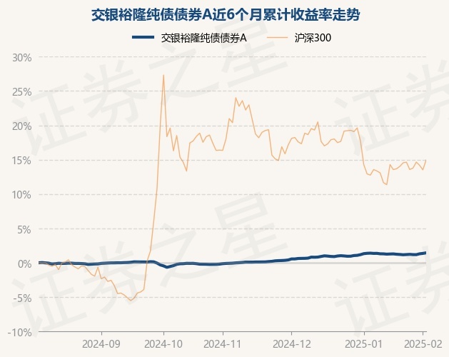 证券之星消息,2月6日,交银裕隆纯债债券A最新单位净值为1.3981元,累计净值为1.4271元,较前一交易日上涨0.08%。历史数据显示该基金近1个月上涨0.04%,近3个月上涨1.5%,近6个月上涨1.44%,近1年上涨3.63%。该基金近6个月的累计收益率走势如下图: