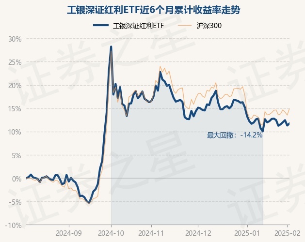证券之星消息,2月6日,工银深证红利ETF最新单位净值为1.6018元,累计净值为1.9078元,较前一交易日上涨0.39%。历史数据显示该基金近1个月上涨0.06%,近3个月下跌5.99%,近6个月上涨11.5%,近1年上涨8.96%。该基金近6个月的累计收益率走势如下图: