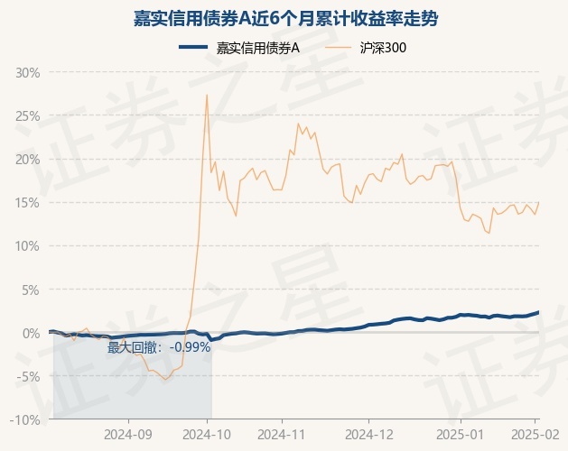 证券之星消息,2月6日,嘉实信用债券A最新单位净值为1.3402元,累计净值为1.7196元,较前一交易日上涨0.16%。历史数据显示该基金近1个月上涨0.28%,近3个月上涨2.28%,近6个月上涨2.26%,近1年上涨4.9%。该基金近6个月的累计收益率走势如下图: