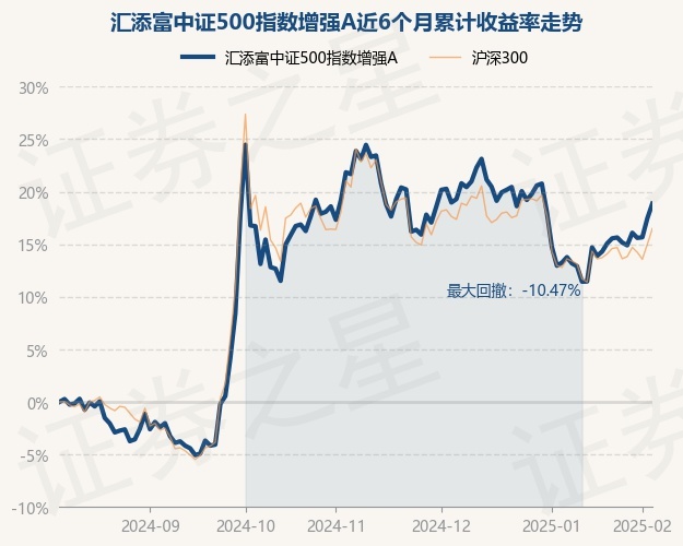 证券之星消息,2月7日,汇添富中证500指数增强A最新单位净值为1.6347元,累计净值为1.8997元,较前一交易日上涨1.19%。历史数据显示该基金近1个月上涨4.47%,近3个月下跌4.05%,近6个月上涨18.86%,近1年上涨22.01%。该基金近6个月的累计收益率走势如下图: