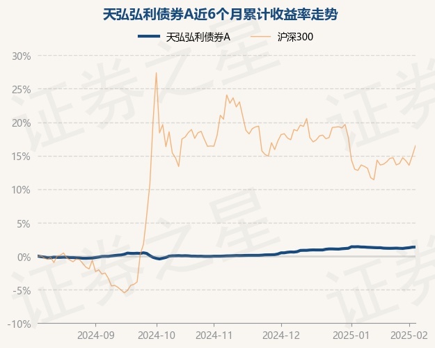 证券之星消息,2月7日,天弘弘利债券A最新单位净值为1.1196元,累计净值为1.582元,较前一交易日上涨0.02%。历史数据显示该基金近1个月下跌0.01%,近3个月上涨1.32%,近6个月上涨1.36%,近1年上涨5.86%。该基金近6个月的累计收益率走势如下图:
