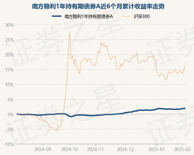 证券之星消息,2月7日,南方稳利1年持有期债券A最新单位净值为1.1645元,累计净值为1.5574元,较前一交易日上涨0.03%。历史数据显示该基金近1个月上涨0.13%,近3个月上涨2.26%,近6个月上涨1.93%,近1年上涨3.74%。该基金近6个月的累计收益率走势如下图: