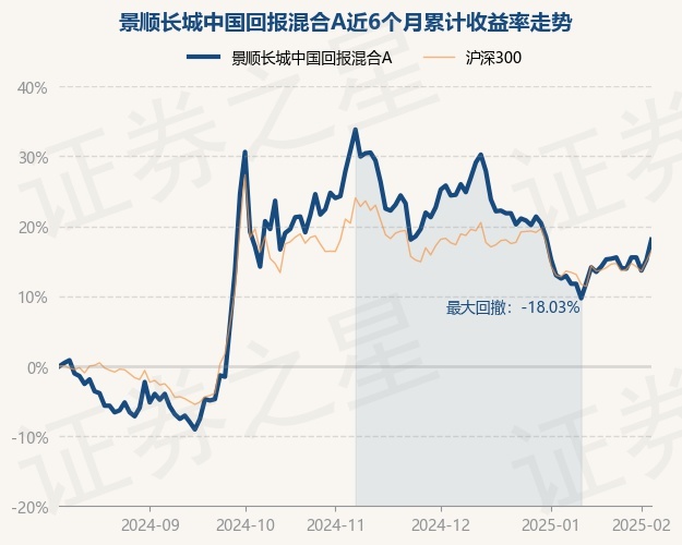 证券之星消息,2月7日,景顺长城中国回报混合A最新单位净值为1.253元,累计净值为1.69元,较前一交易日上涨2.54%。历史数据显示该基金近1个月上涨4.59%,近3个月下跌11.76%,近6个月上涨18.1%,近1年上涨6.64%。该基金近6个月的累计收益率走势如下图: