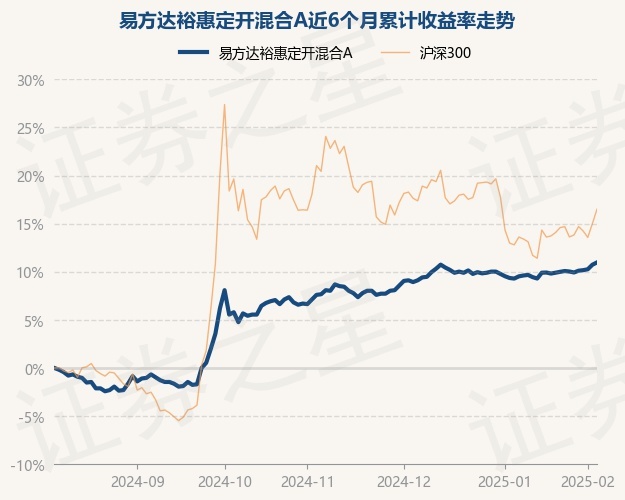 证券之星消息,2月7日,易方达裕惠定开混合A最新单位净值为1.7678元,累计净值为2.5258元,较前一交易日上涨0.22%。历史数据显示该基金近1个月上涨1.33%,近3个月上涨2.67%,近6个月上涨10.98%,近1年上涨12.61%。该基金近6个月的累计收益率走势如下图: