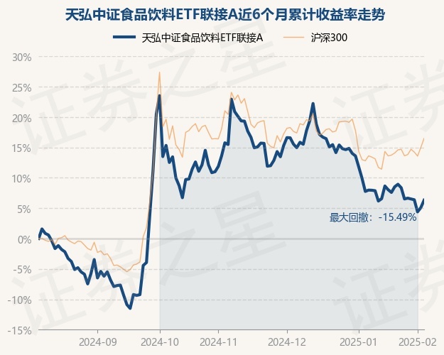 证券之星消息,2月7日,天弘中证食品饮料ETF联接A最新单位净值为2.1255元,累计净值为2.2036元,较前一交易日上涨1.18%。历史数据显示该基金近1个月下跌1.53%,近3个月下跌13.53%,近6个月上涨6.32%,近1年下跌3.67%。该基金近6个月的累计收益率走势如下图: