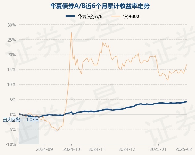 证券之星消息,2月7日,华夏债券A/B最新单位净值为1.399元,累计净值为2.334元,较前一交易日上涨0.07%。历史数据显示该基金近1个月上涨0.39%,近3个月上涨2.72%,近6个月上涨4.14%,近1年上涨6.75%。该基金近6个月的累计收益率走势如下图: