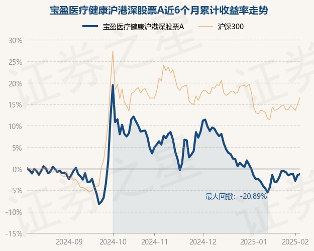 证券之星消息,2月7日,宝盈医疗健康沪港深股票A最新单位净值为1.393元,累计净值为1.469元,较前一交易日上涨0.22%。历史数据显示该基金近1个月上涨1.75%,近3个月下跌8.29%,近6个月下跌1.28%,近1年下跌1.76%。该基金近6个月的累计收益率走势如下图: