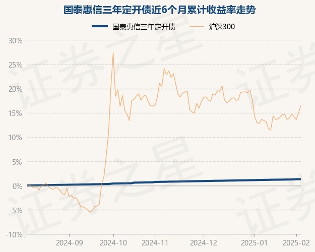 证券之星消息,2月7日,国泰惠信三年定开债最新单位净值为1.0056元,累计净值为1.1415元,较前一交易日上涨0.01%。历史数据显示该基金近1个月上涨0.17%,近3个月上涨0.55%,近6个月上涨1.31%,近1年上涨2.44%。该基金近6个月的累计收益率走势如下图: