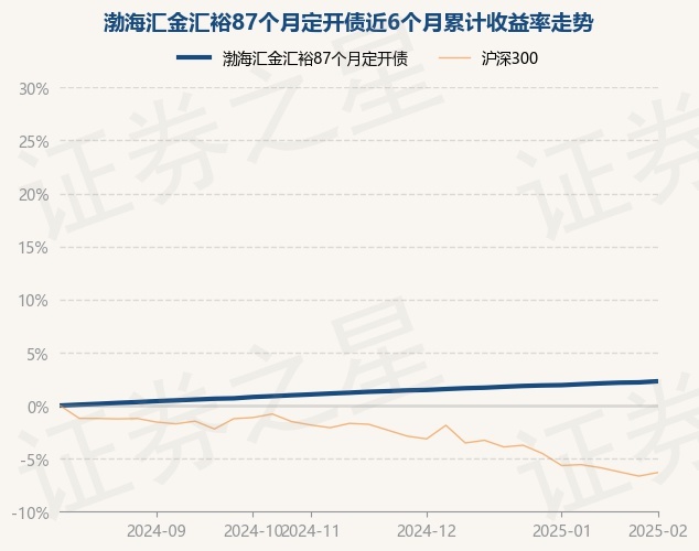 证券之星消息,2月7日,渤海汇金汇裕87个月定开债最新单位净值为1.0602元,累计净值为1.1757元,较前一交易日上涨0.1%。历史数据显示该基金近1个月上涨0.36%,近3个月上涨1.09%,近6个月上涨2.15%,近1年上涨4.31%。该基金近6个月的累计收益率走势如下图: