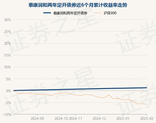 证券之星消息,2月7日,泰康润和两年定开债券最新单位净值为1.026元,累计净值为1.1374元,较前一交易日上涨0.07%。历史数据显示该基金近1个月上涨0.21%,近3个月上涨0.62%,近6个月上涨1.19%,近1年上涨2.34%。该基金近6个月的累计收益率走势如下图: