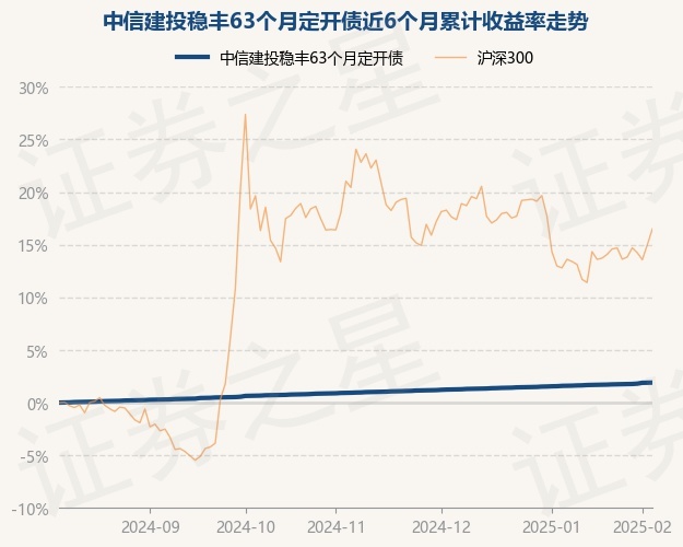 证券之星消息,2月7日,中信建投稳丰63个月定开债最新单位净值为1.0083元,累计净值为1.1646元,较前一交易日上涨0.01%。历史数据显示该基金近1个月上涨0.3%,近3个月上涨0.94%,近6个月上涨1.9%,近1年上涨3.79%。该基金近6个月的累计收益率走势如下图: