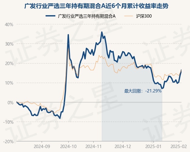 广发行业严选三年持有期混合A为混合型-偏股基金,根据最新一期基金季报显示,该基金资产配置:股票占净值比94.83%,债券占净值比1.89%,现金占净值比3.63%。基金十大重仓股如下: