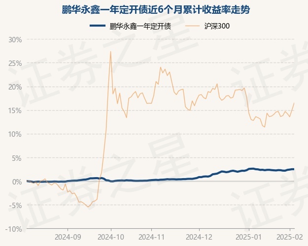 证券之星消息,2月7日,鹏华永鑫一年定开债最新单位净值为1.0294元,累计净值为1.0857元,较前一交易日上涨0.0%。历史数据显示该基金近1个月上涨0.0%,近3个月上涨2.21%,近6个月上涨2.5%,近1年上涨4.66%。该基金近6个月的累计收益率走势如下图: