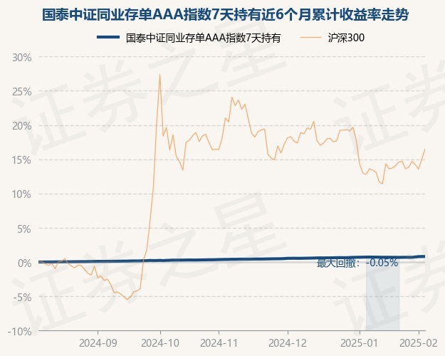 证券之星消息,2月7日,国泰中证同业存单AAA指数7天持有最新单位净值为1.0568元,累计净值为1.0568元,较前一交易日上涨0.01%。历史数据显示该基金近1个月上涨0.09%,近3个月上涨0.41%,近6个月上涨0.81%,近1年上涨1.76%。该基金近6个月的累计收益率走势如下图: