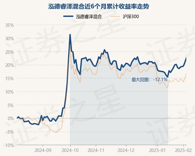 证券之星消息,2月7日,泓德睿泽混合最新单位净值为1.1155元,累计净值为1.1155元,较前一交易日上涨1.36%。历史数据显示该基金近1个月上涨4.24%,近3个月下跌1.43%,近6个月上涨22.46%,近1年上涨26.69%。该基金近6个月的累计收益率走势如下图: