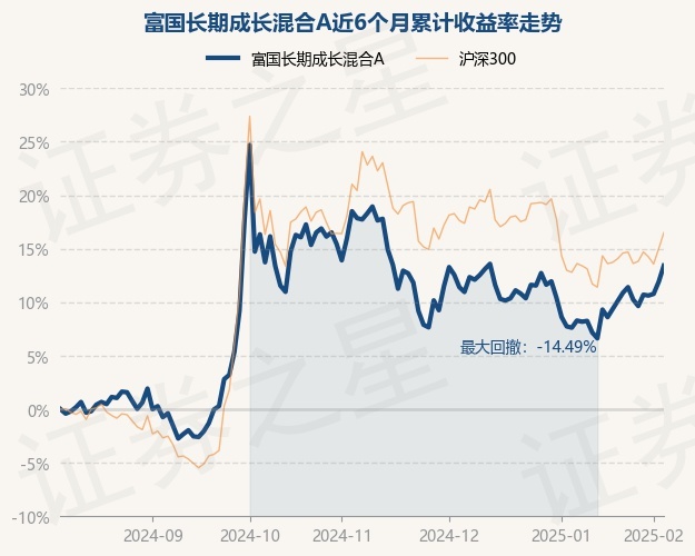 证券之星消息,2月7日,富国长期成长混合A最新单位净值为0.7515元,累计净值为0.7515元,较前一交易日上涨1.35%。历史数据显示该基金近1个月上涨4.74%,近3个月下跌3.67%,近6个月上涨13.42%,近1年上涨20.24%。该基金近6个月的累计收益率走势如下图: