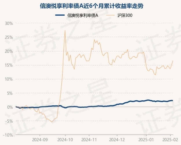 证券之星消息,2月7日,信澳悦享利率债A最新单位净值为1.0301元,累计净值为1.0553元,较前一交易日下跌0.03%。历史数据显示该基金近1个月下跌0.01%,近3个月上涨2.09%,近6个月上涨2.21%,近1年上涨4.8%。该基金近6个月的累计收益率走势如下图: