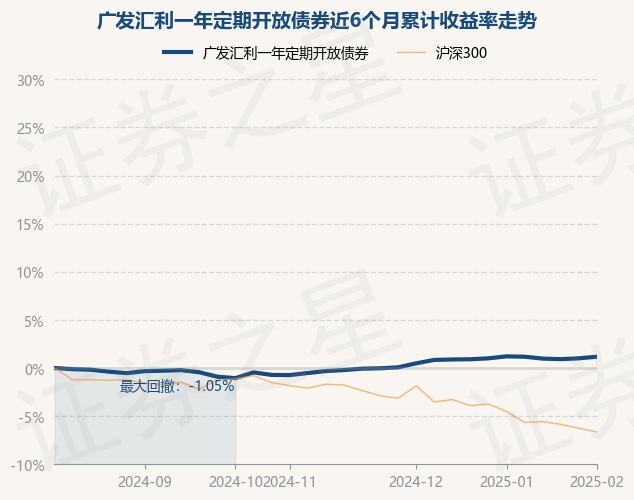 证券之星消息,2月7日,广发汇利一年定期开放债券最新单位净值为1.0345元,累计净值为1.2177元,较前一交易日上涨0.16%。历史数据显示该基金近1个月下跌0.04%,近3个月上涨1.92%,近6个月上涨1.17%,近1年上涨4.23%。该基金近6个月的累计收益率走势如下图: