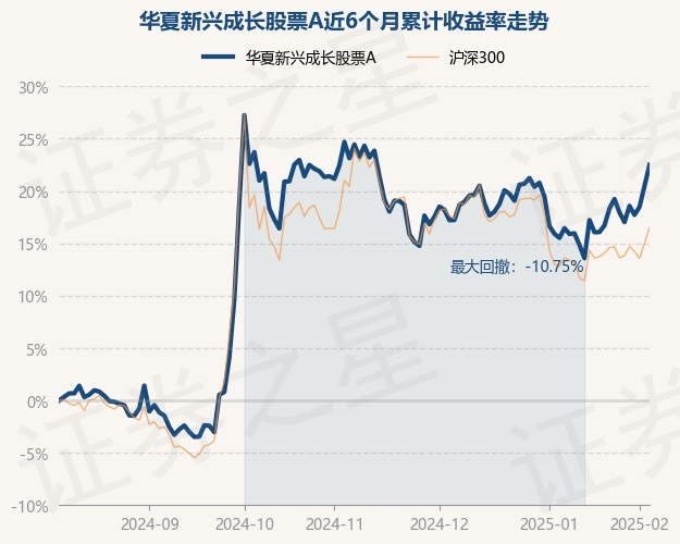 证券之星消息,2月7日,华夏新兴成长股票A最新单位净值为0.7453元,累计净值为0.7453元,较前一交易日上涨1.69%。历史数据显示该基金近1个月上涨5.19%,近3个月下跌1.56%,近6个月上涨22.5%,近1年上涨29.33%。该基金近6个月的累计收益率走势如下图: