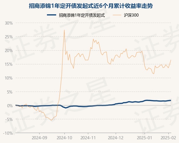 招商添锦1年定开债发起式为债券型-长债基金,根据最新一期基金季报显示,该基金资产配置:无股票类资产,债券占净值比123.78%,现金占净值比0.5%。