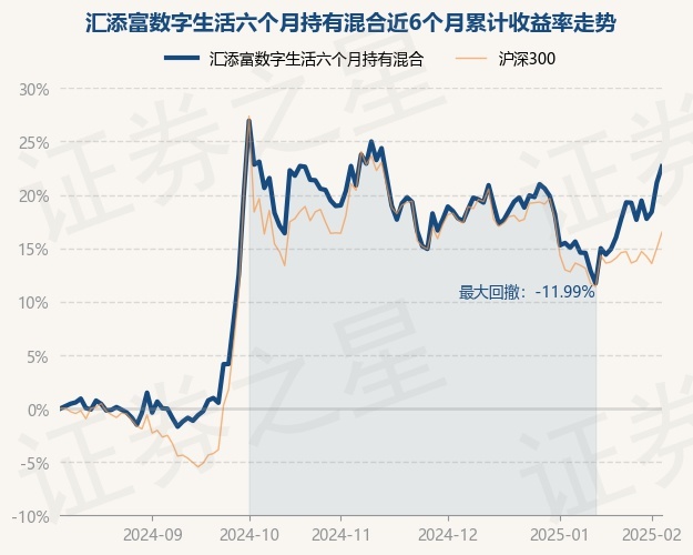 证券之星消息,2月7日,汇添富数字生活六个月持有混合最新单位净值为0.6625元,累计净值为0.6625元,较前一交易日上涨1.25%。历史数据显示该基金近1个月上涨6.08%,近3个月下跌0.9%,近6个月上涨22.66%,近1年上涨24.84%。该基金近6个月的累计收益率走势如下图: