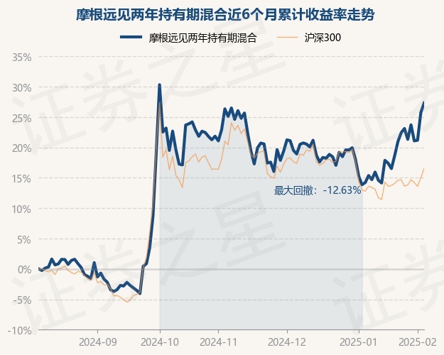 证券之星消息,2月7日,摩根远见两年持有期混合最新单位净值为0.778元,累计净值为0.778元,较前一交易日上涨1.26%。历史数据显示该基金近1个月上涨10.35%,近3个月上涨0.65%,近6个月上涨27.31%,近1年上涨33.22%。该基金近6个月的累计收益率走势如下图: